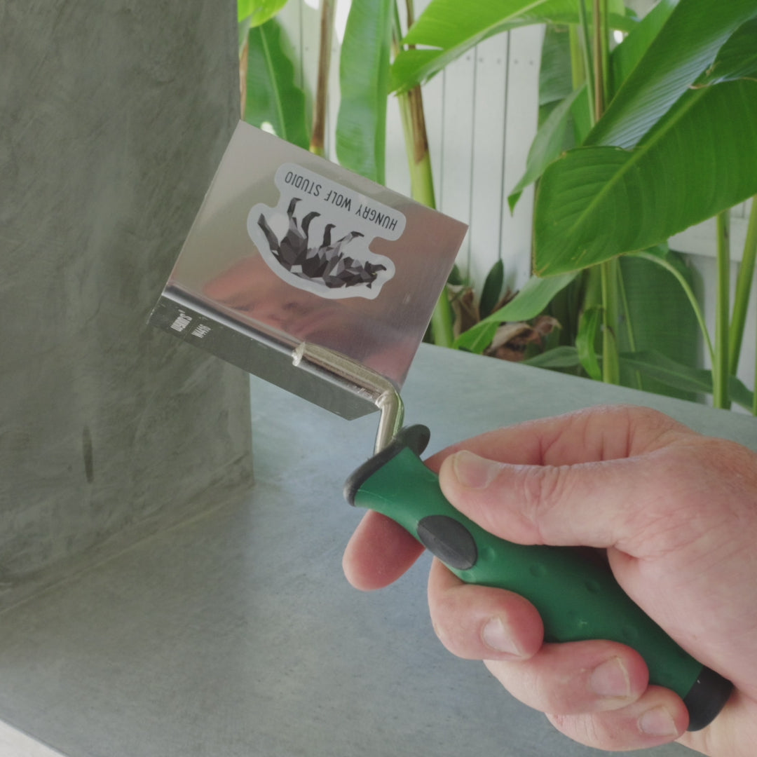 Our angled corner trowels are irreplaceable in application of architectural concrete on corners. Our corner trowels is an irreplaceable tool for creating a perfect 90 degree angle and perfect corners. Special care to ergonomics of grips. We wanted to make sure that your wrists are safe even if you work for a long time.